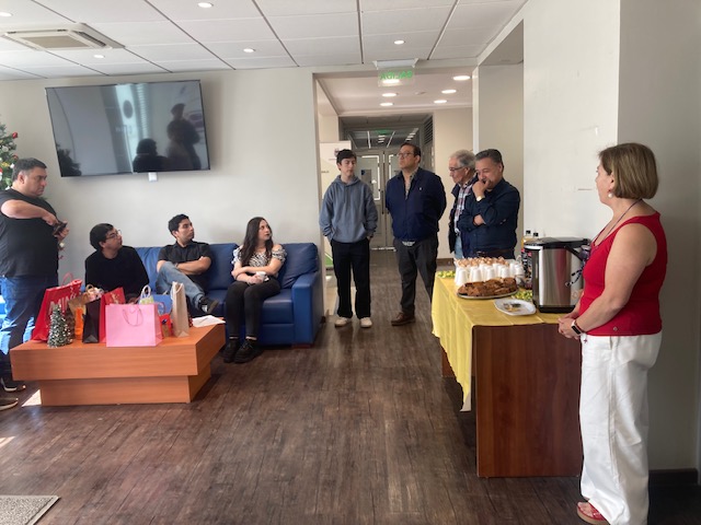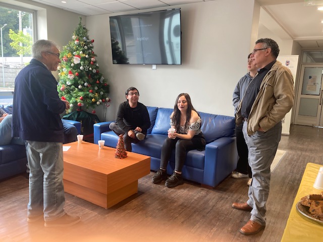 El MGE celebró la navidad 2025 con sus estudiantes, lo anterior, en el marco de la reunión final de cierre del año 2025, quienes pudieron compartir con sus compañeros/as y con representantes del Centro de Graduados/as MGE, el Sr. Claudio Guiñez, vicepresidente y la Srta. Mónica Villarroel, delegada del CGMGE. Igualmente asistió al cierre del año académico la Srta. Belén Azocar, graduada del MGE quien asiste a clases junto a otros graduados/as. De esta actividad participó, la directora del programa Concepción, Dra. Patricia Huerta, el Mg. Adolfo Albornoz y el Dr. Sergio Araya, quienes desearon a los y las estudiantes un excelente término del año académico 2025, una Feliz Navidad y Próspero año 2025, junto a sus familias y seres queridos.